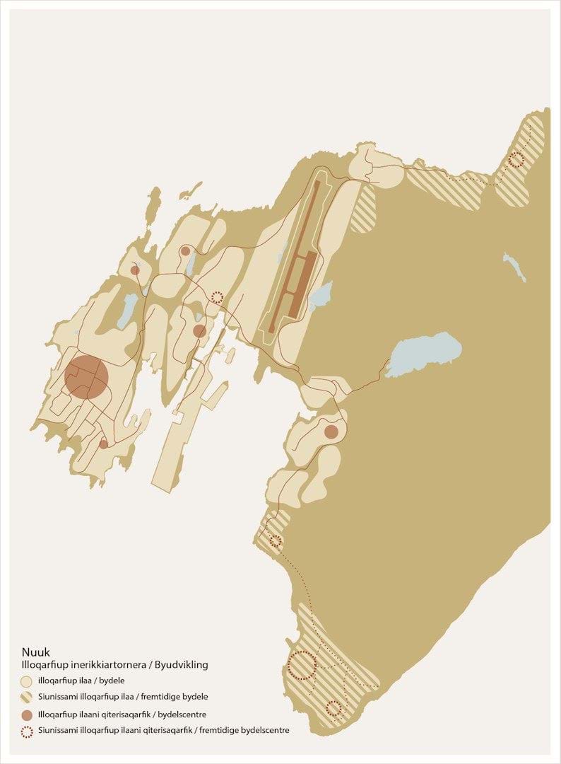 Aamma Nuummi eqikkartinneqarsinnaasut aamma illoqarfimmik allannguiffiusinnaasut suli periarfissaapput. Ineriartorneq taanna ingerlallualereerpoq, illoqarfiup qeqqani inissialiortoqarlunilu sanaartortoqarmat soorlu atuarfissuaq nutaaq Atuarfik Inussuk.